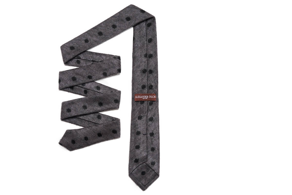 Our standard necktie width is 2.5” (pictured), which maintains a classic taper from knot to tip, giving the necktie a timeless shape.
